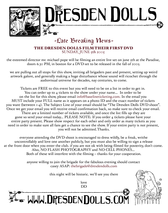 DRESDEN DOLLS FILM THEIR FIRST DVD - SUNDAY, JUNE 5