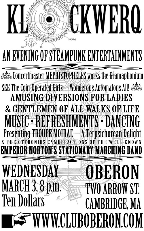 (8pm-?? Klockwerq: An Evening of Steampunk Entertainments (featuring